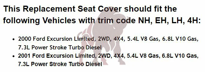 - This item is a new custom-made,Ā OEM replacement, inĀ TanĀ forĀ 2000, 2001 Ford Excursion (Doesn't FIT XLT)
