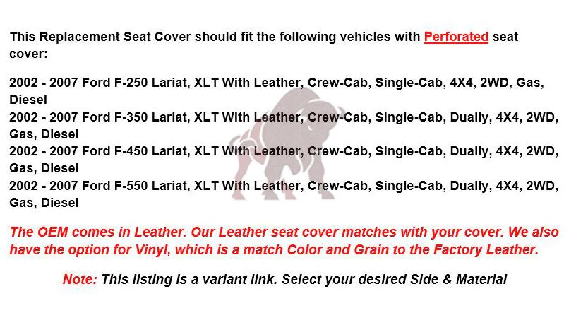 - This item is a new custom-made,Ā OEM replacement, inĀ Black PerforatedĀ for 2003, 2004, 2005, 2006, 2007Ā Ford F-250/F-350 LariatĀ